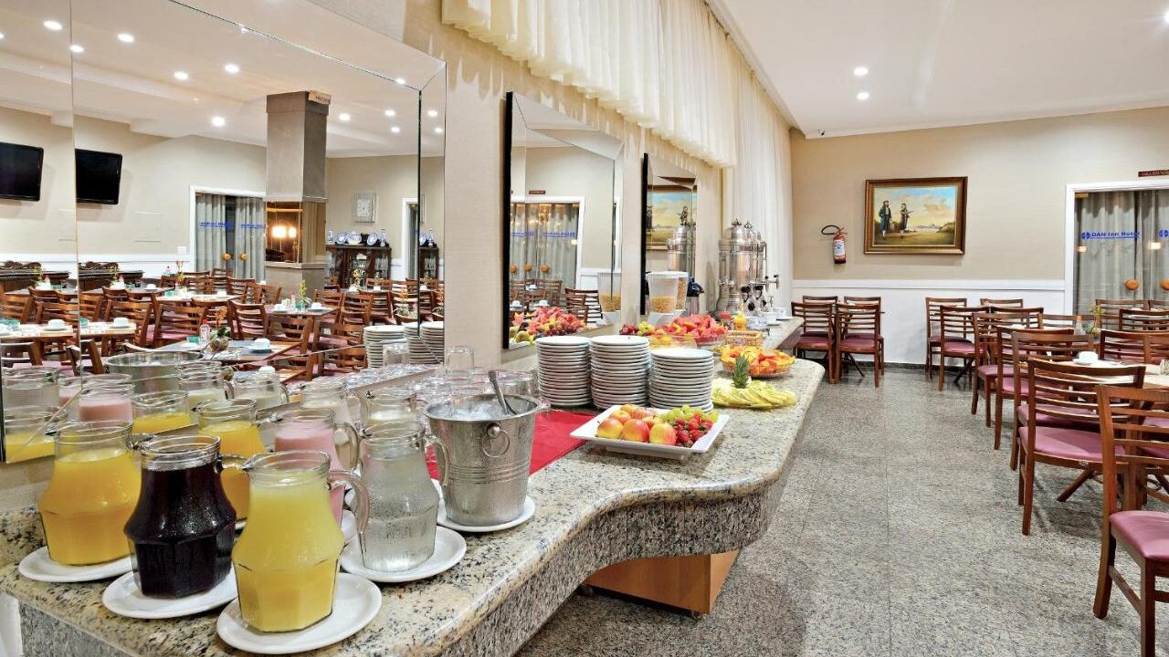 O café da manhã conta com uma variedade enorme de alimentos para todos os gostos, e é cortesia para aqueles que se hospedam no Dan Inn Araraquara. Por isso, pensar em hotel com piscina em Araraquara inclui também prezar a qualidade de suas refeições ao se hospedar no local.