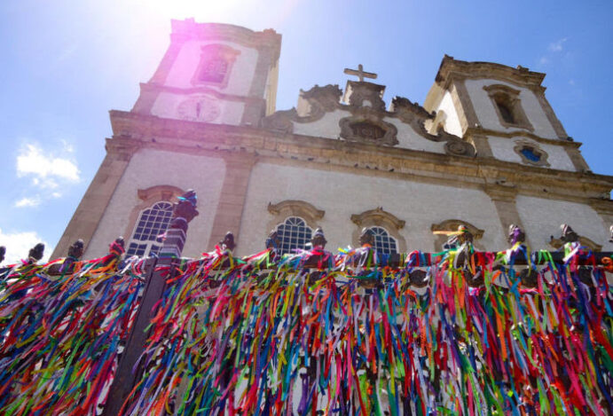 Impossível ir a Salvador e não voltar com dezenas daquelas fitinhas do Senhor do Bonfim. É uma tradição de mais de 200 anos. Conta a lenda que um tesoureiro da irmandade do Senhor do Bonfim tinha o hábito de usar uma fita que, originalmente, tinha a medida do comprimento do braço direito da imagem do Senhor do Bonfim. A partir daí surgiram os três nós, os pedidos, as fitinhas na grade. Fé que colore o cenário. Outra tradição envolvendo a Igreja é a Lavagem do Bonfim, quando as baianas jogam água nos degraus do templo, durante todo o dia, animadas por blocos de afoxé. De 1772, a igreja tem fachada em estilo rococó, coberta de azulejos portugueses do século XIX. A decoração é em estilo neoclássico.
